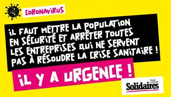 COVID-19 : Non, nous ne sommes pas en guerre! Par contre nous n’avons guère de moyens, guère de personnel, guère de lits! La Fédération SUD Santé Sociaux exige la fermeture de toutes les entreprises, de toutes les usines dont le travail n’est pas indispensable au maintien de la vie ! La vie, la santé ne se […]