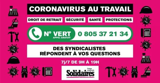 Codiv : droit de retrait, chômage partiel, sécurité, temps de travail, protection…Un gros travail de militant·e·s syndicaux Solidaires issu·e·s de différents secteurs, géographiques et professionnels , a permis de lancer ce numéro d’appel gratuit. 0 805 37 21 34 Il est ouvert tous les jours, dimanche compris, entre 9h et 19h. Il est avant tout […]