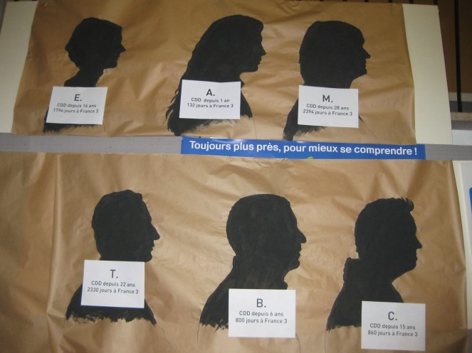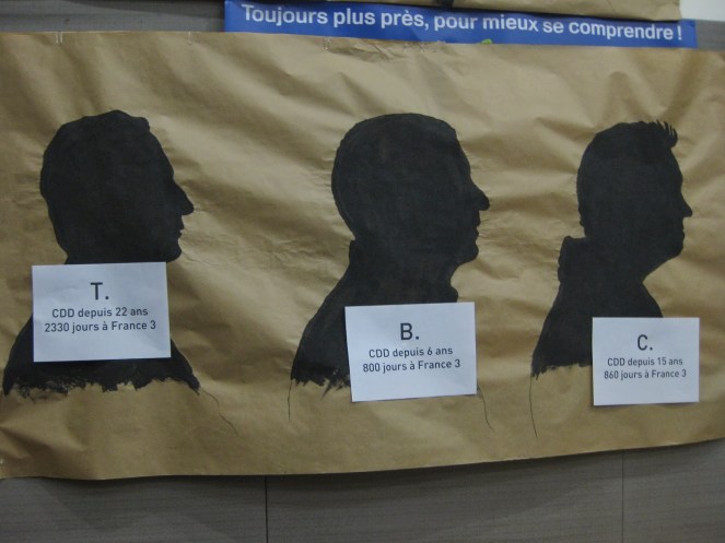 Pour le CE Pôle Sud Ouest du 27 novembre 2012, les élus et représentants syndicaux avaient installé un décor en soutien aux CDD et intermittents menacés par les mesures d’économies :